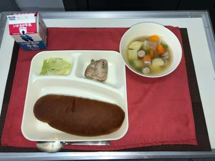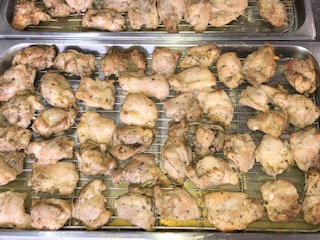 鶏肉の香草焼きは塩・こしょう・バジル・オリーブ油で下味をつけて焼き上げています。1人1切れでした。