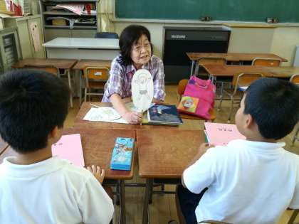 日本語が母国語でない児童を対象に日本語を学習する機会を設けています。人形を使ってあいさつの練習をしたり、この日は学校探検をしたりしながら職員室や保健室など、学校で使用する教室のことばを覚えていきました。