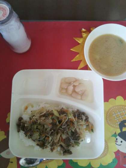 みそ汁には、キャベツ、オクラ、とうふ、がはいっています。