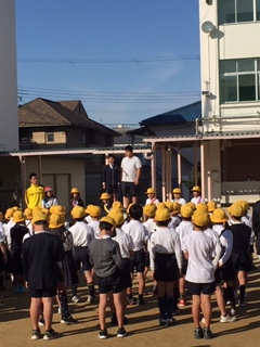 まずはじめに、合唱クラブの子ども達に表彰がありました。「MBSこども音楽コンクール」で優秀賞を受賞しました。まわりの子ども達から大きな拍手をもらっていました。次に、校長先生から、「戦争の歴史」や「平和の大切さ」についてお話がありました。
