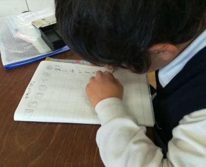 10月22日(月)の様子です。よく見ると、ノートの上部には自分で書いた「きれいですか?」の文字が。漢字を丁寧に書けているかどうか、自分自身への問いかけだそうです。そうした心持ちは、見習うところが大きいですね。