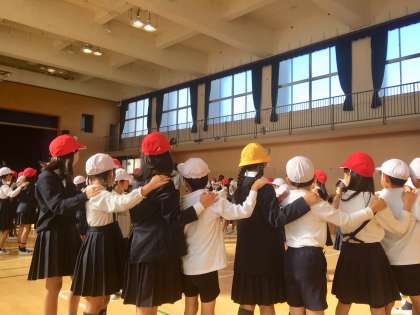 2年・4年の児童集会は、ジャンケン列車です。楽しいBGMに合わせて異学年交流しています。
