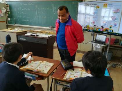 テキスト’We Can 2’に沿って、短い会話文のビデオを見て、学習しました。写真は、ペアになってロールプレイをしている様子です。読み書きよりも聞く、話すに重点を置いた学習となっています。