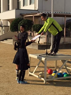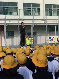 今日の全校朝会では、「ハヌルの会」の子ども達への表彰、「敬老会」の方からのお手紙の紹介がありました。校長先生からは、学習発表会で練習していることを本番で100%発揮するようにとお話がありました。
