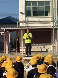 看護当番の先生からは、標準服の着方と生活目標についてお話がありました。
