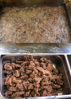 くじらのたつた揚げはしょうが汁・料理酒・こい口しょうゆで1時間以上下味をつけたくじらにでんぷんをまぶして揚げています。年に1回のくじらを使用したメニューは大好評でした。