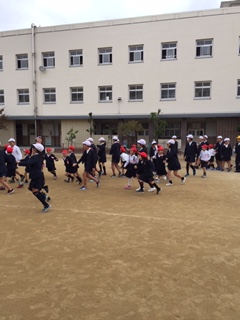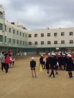 今日の朝、1年生と6年生のペアグループで児童集会を行いました。活動内容は、「鬼ごっこ」です。