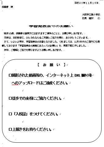 学習発表会でのお願い H30.11.16(金)
