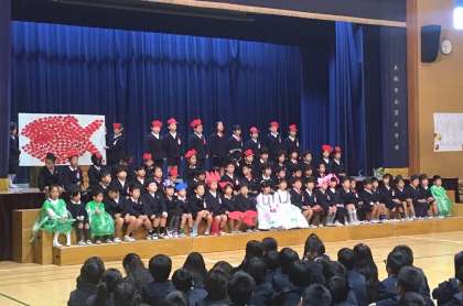 続いて1年生は、子どものための音楽ものがたり「スイミー」より、ピアノ伴奏交えての朗読劇。絵や衣装など工夫がありました。