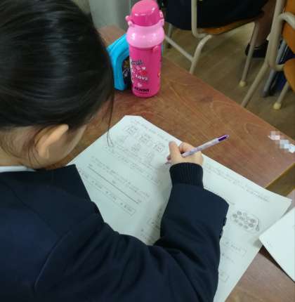近々行われる「大阪市小学校学力経年調査」に向けた学習をしています。類似問題を解いて、様式に慣れることに加え、既習単元の確認も丁寧に行いました。