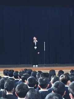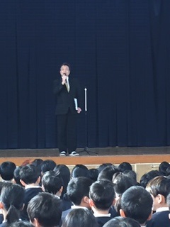次に、3学期から着任した新しい先生の紹介があり、生活指導の先生からは「学校生活のきまり」についてお話がありました。