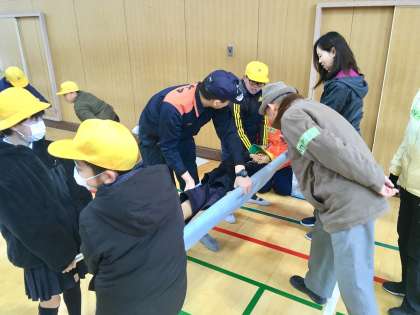 避難訓練の後、学年ごとに防災体験教室を行いました。