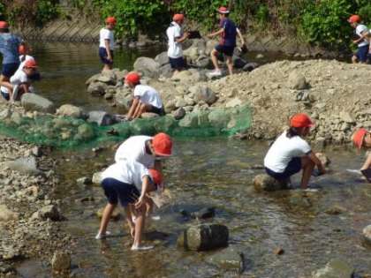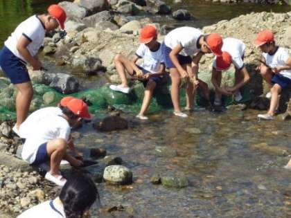 1日目 到着してお昼ごはんの後、川で鱒つかみをしました。