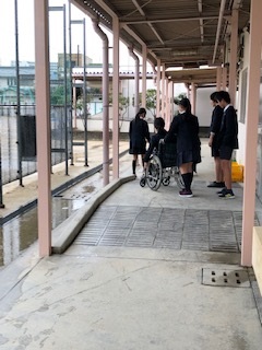 今日は、6年生の事前学習として「車いす体験」がありました。