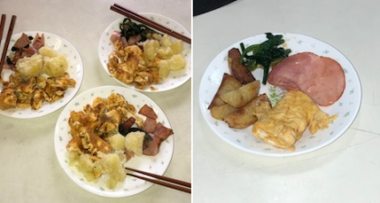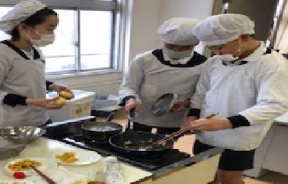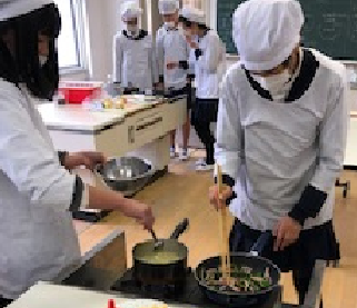 材料は、ジャガイモ・卵・ハム・ほうれん草です。子ども達は、自分達で考えた調理法で楽しく料理作りに取り組んでいました。