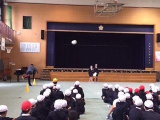 今日は、1年生と6年生の児童集会がありました。