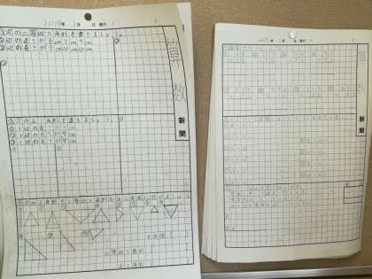算数係の子どもがこうした「算数新聞」を作成しています。このプリントは、練習問題が早く終わったりした場合などに取り組むようにしているもので、自主学習の一環となっています。