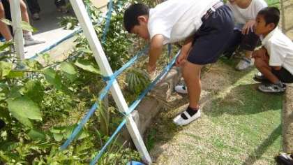 あゆみ学級で植えていたすいかが大きくなったので、収穫しました。