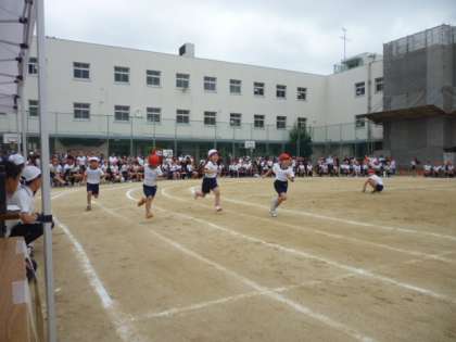 1年生のかけっこです。勝っても負けても全力で走ります。