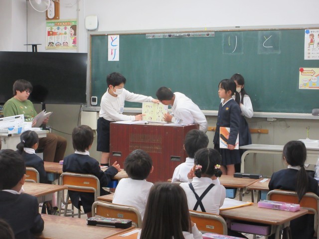 図書委員児童による読み聞かせを行いました。朝の読書タイムに1,2年生の教室に行きました。静かに聞いてくれました。