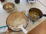 ご飯とみそ汁を作りました。ご飯は中の様子が分かるガラス鍋で炊き、お米の様子を観察...