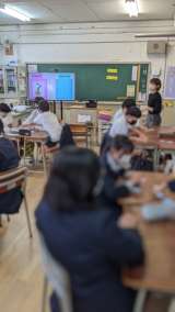 英語では、自己紹介をしたあと、英語と日本語のカードゲームをして、グループのみんな...