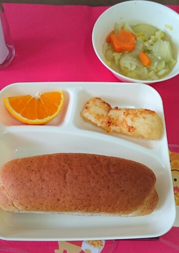 今日の献立は、 ● いかてんぷら ● 洋風煮 ● デコポン ● パン ● 牛乳 ...