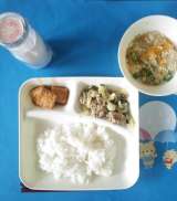 今日の献立は、 ● 鶏肉と野菜のスープ煮 ● カレーソテー ● ミックスフルーツ...