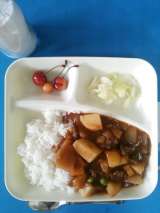 今日の献立は、 ● ハヤシライス ● キャベツのゆずドレッシング ● さくらんぼ...