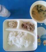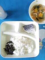 今日の献立は、 ● さごしの塩焼き ● みそ汁 ● 牛ひじきそぼろ ● ごはん ...