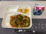★豚肉のカレー風味焼き ★ミネストローネ ★ミックスフルーツ(缶) ★こっぺパン...