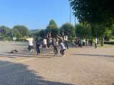 朝の散策タイムです。 クラスごとに記念写真を撮ってます。