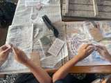 勾玉づくりがスタートしました。 穴が空いた石に鉛筆で下書きをしてサンドペーパーで...