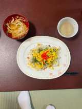 昼食を食べ始めました。 ちらし寿司と温かいにゅうめんです。 昼食後、閉舎式があり...