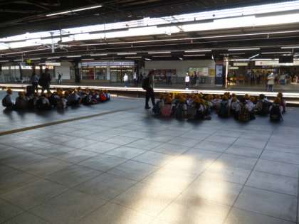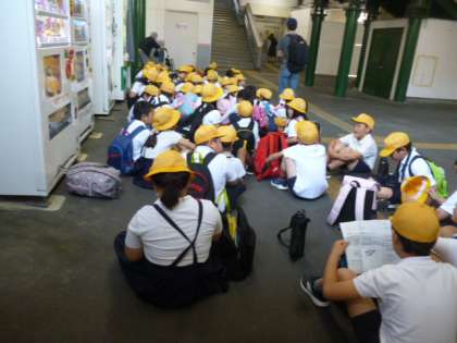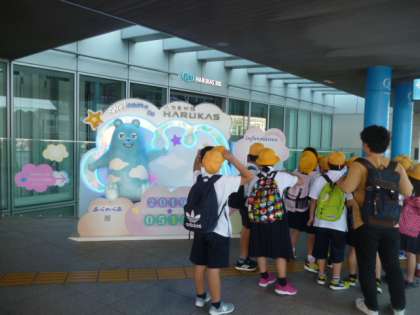 今日は3年生は環状線に乗っての環状線めぐりとあべのハルカスの見学です。いよいよ出発です。
