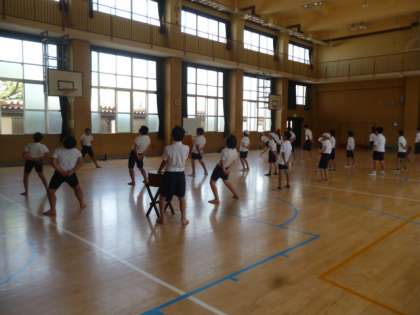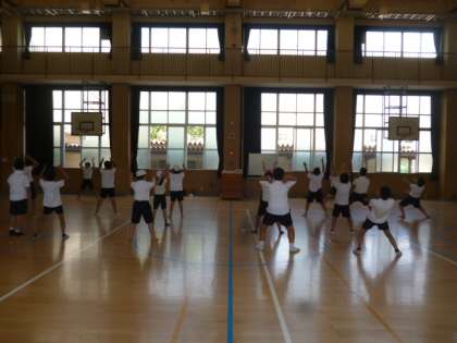 15分休みに応援団の練習をしています。声をからしながら、集中して練習をしています。