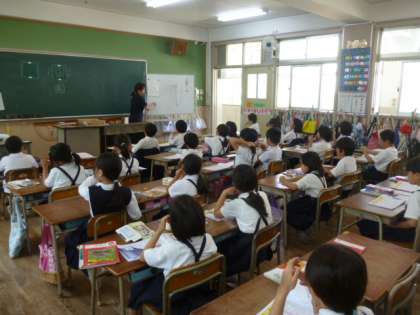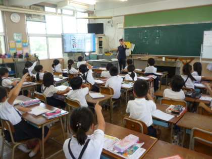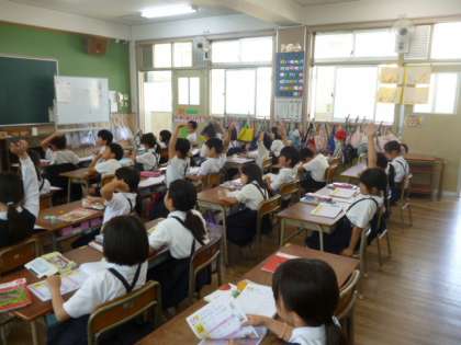2年生の国語の授業です。音読は一斉に読んだり、たけのこ読みをしたり、元気いっぱいでした。漢字学習も積極的に手をあげて取り組んでいます。