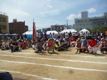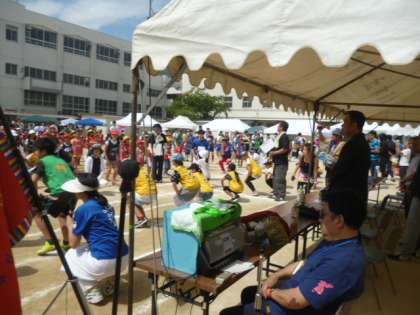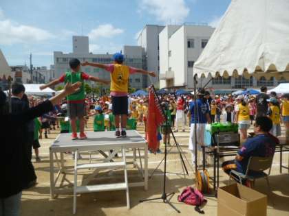 今日は第34回のオリニウンドンフェです。本校の児童がみんなの前で体操の見本をしてくれました。