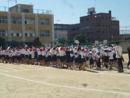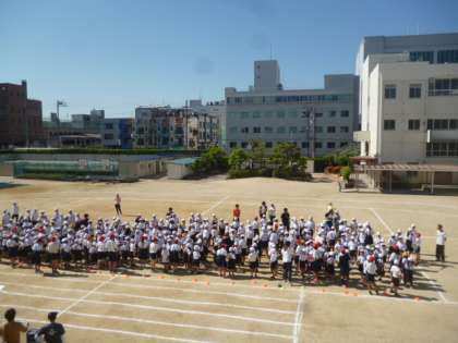 毎週木曜日は児童集会の日です。あおぞら班で整列しています。