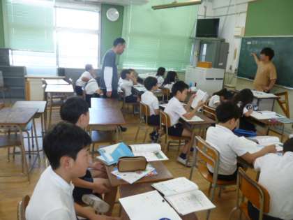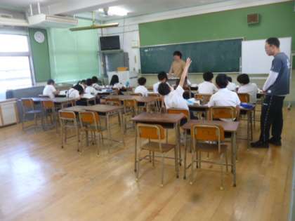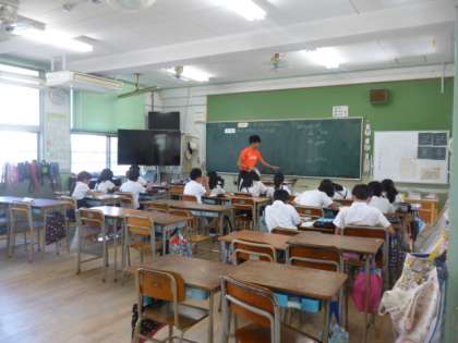 今日の算数はクラスを2つに分けての授業です。3ケタの割り算の方法です。