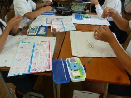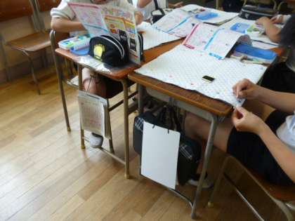 ナップサックづくりの2時間目です。どんなのができるか楽しみです。