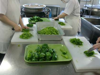 今日の献立にも野菜を約100グラム使っています。野菜は1日に子どもなら300グラム、大人なら350グラム必要とされています。お家でも、是非野菜を食卓にたっぷり出していただけたらと思います。