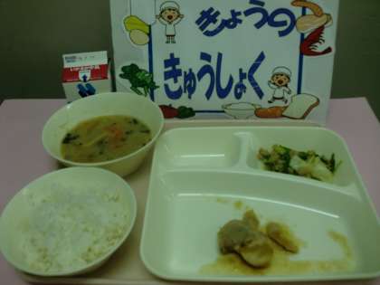 ★鶏肉のおろしじょうゆかけ・みそ汁・野菜いため・ご飯・牛乳