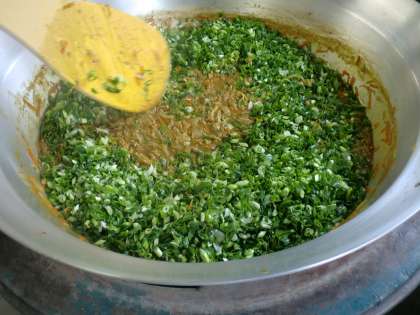 「和風カレー丼」は、だしこんぶとけずりぶしでとっただしとカレールゥ、濃い口しょうゆで和風に仕上げます。うすあげと青ネギがアクセントになっています。1枚目の写真は、仕上げに、たっぷりの青ネギを入れたところです。
