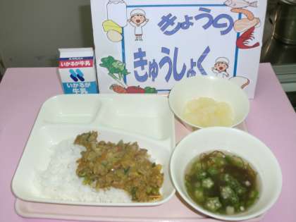 ★和風カレー丼・もずくとオクラのとろり汁・和なし(缶づめ)・牛乳