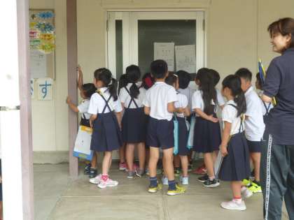 2年生がしっかりと1年生を案内してくれます。校長室にも来てくれました。