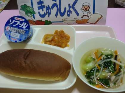 ★えびのチリソース・中華スープ・ヨーグルト・黒糖パン・牛乳
