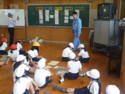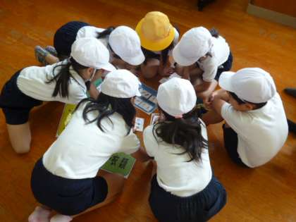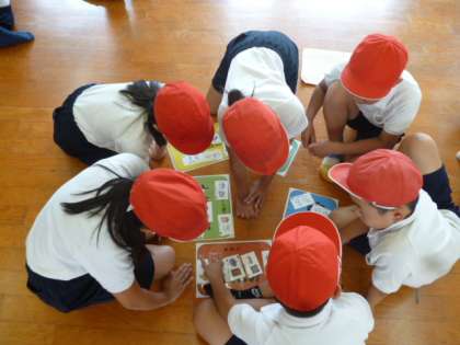 ごみの分別ゲームもしました。いろいろなごみを友達と協力しながら、分別をしました。正しい分別方法を教えていただきました。