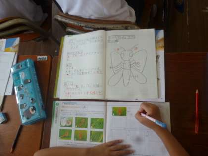 昆虫のからだのつくりについて学習しています。きれいにノートを取っています。
