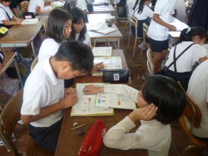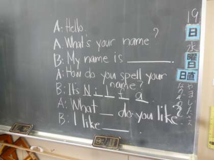 自分の名前を紹介したり、好きなものについて質問したり、積極的に言い合っています。